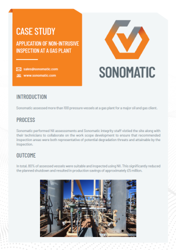 A Sonomatic avaliou mais de 100 vasos de pressão em uma planta de gás para um grande cliente do setor de óleo e gás.