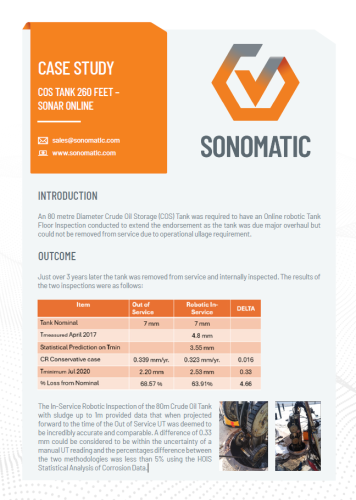 Tanque COS de 260 Pés – Inspeção Online com SONAR
