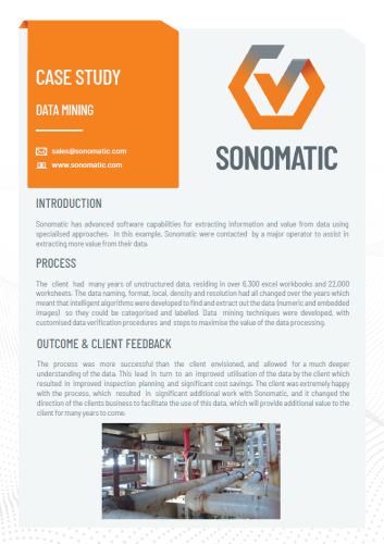 O cliente ficou extremamente satisfeito com o processo, que resultou em um volume significativo de trabalhos adicionais com a Sonomatic, e mudou a direção do negócio do cliente para facilitar o uso dos dados, o que proporcionará valor adicional ao cliente por muitos anos.