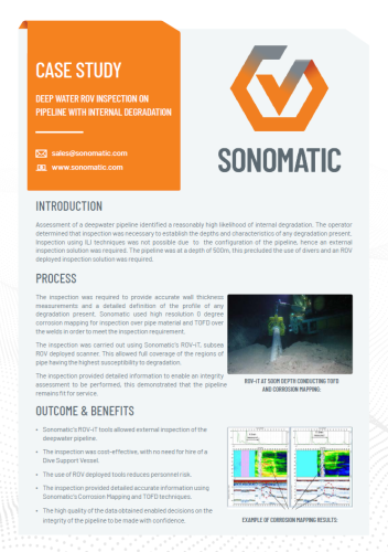 - As ferramentas ROV-iT da Sonomatic permitiram a inspeção externa do duto em águas profundas.