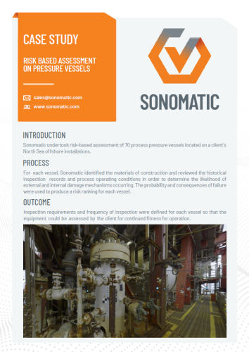 A Sonomatic realizou uma avaliação baseada em risco de 70 vasos de pressão de processo localizados nas instalações offshore do cliente no Mar do Norte.